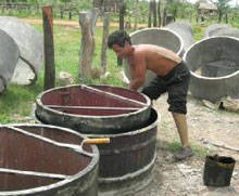 Although they have been making concrete for only six or seven months, the business is already successful. Sim Bung Seng and his team make concrete posts for house foundations and also circular concrete sections which are used for pipes, wells and toilets. As of now, they produce to order for customers both from Veal Thom and some surrounding communities, including NGOs. In the future he hopes that they'll be able to expand production and increase the team size.